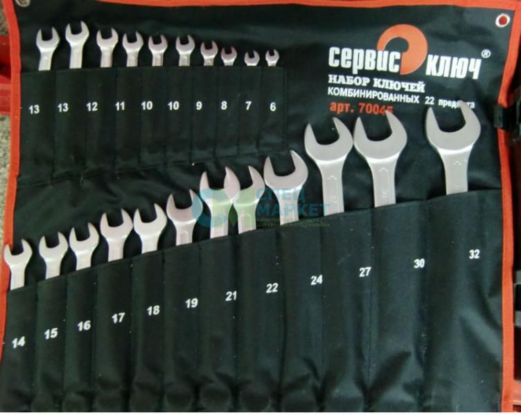 Набор комбинированных ключей СЕРВИС КЛЮЧ PROFFI (22 предмета) – это универсальный комплект ключей, которые подходят для работы с шестигранным крепежом разных размеров. Удобство этого ключа в том, что с одной стороны ключа – стандартный открытый захват (рожковый), с другой – кольцевой (накидной), который имеет 12 граней для улучшения захвата при работе с «трудным» крепежом. Инструмент широко используется в быту, в промышленной и автомобильной сфере.