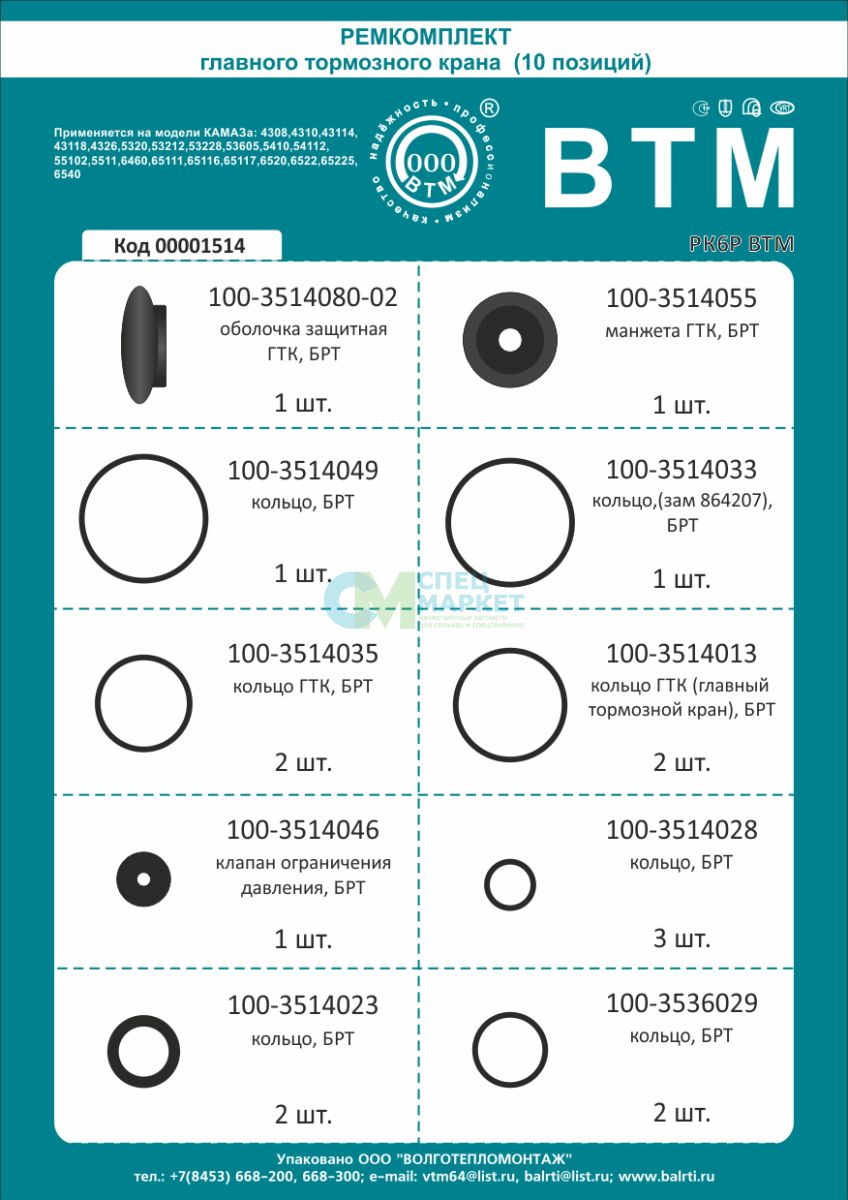 Ремкомплект ГТК №6Р БРТ